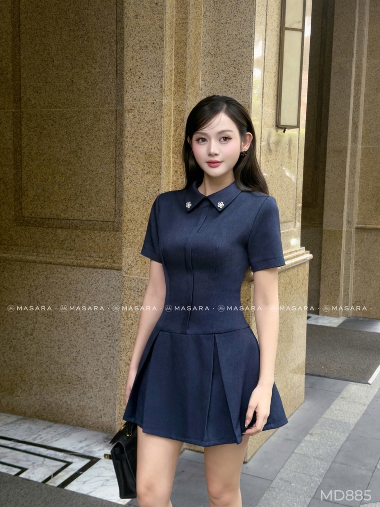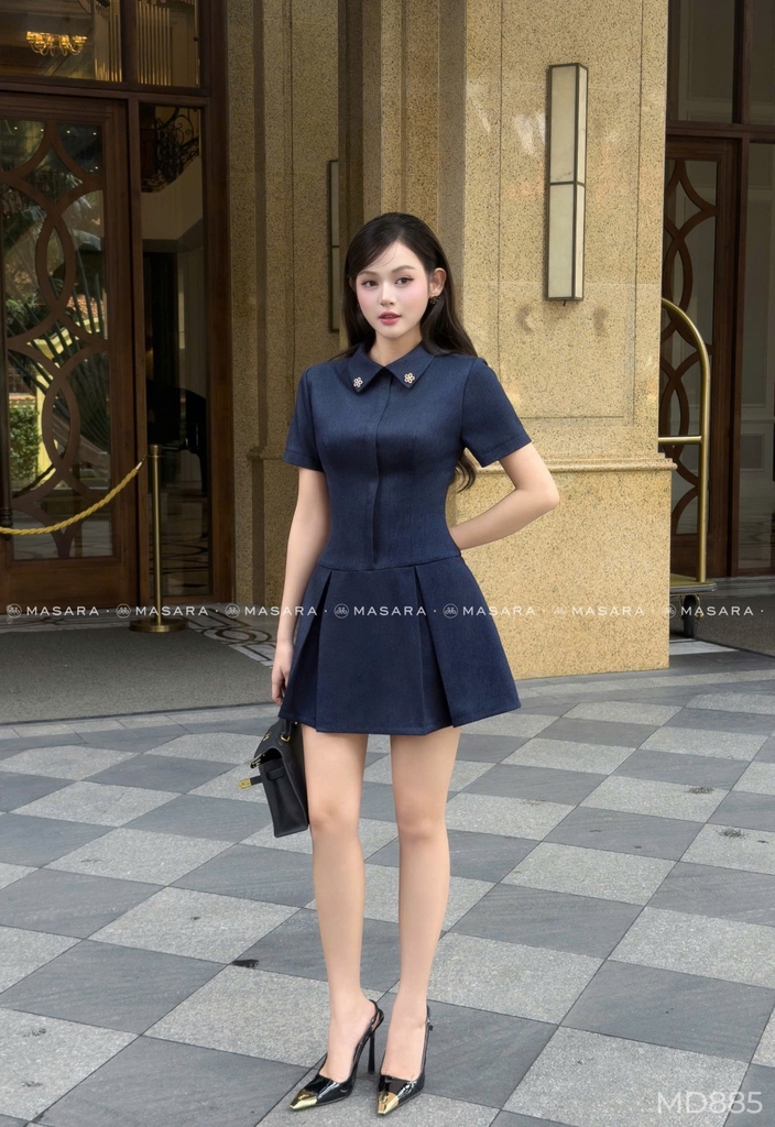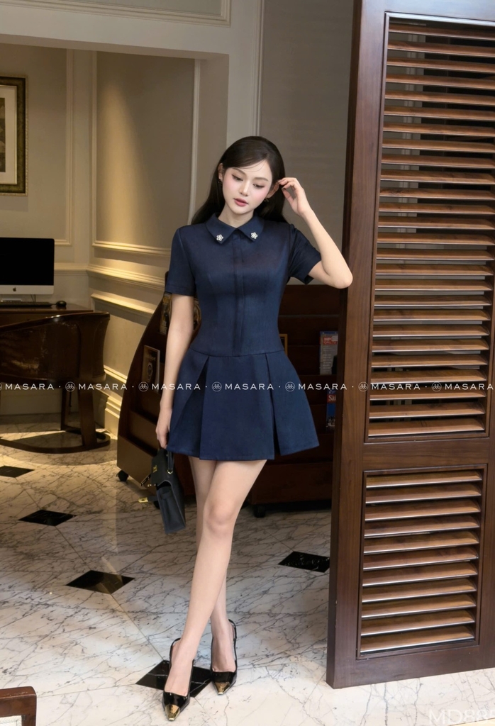 - Đầm dáng chữ A ngắn, ôm nhẹ thân trên và xoè nhẹ phần chân váy, giúp tôn dáng và tạo cảm giác gọn gàng, năng động.