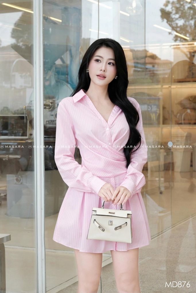 - Họa tiết sọc hồng pastel tạo cảm giác tươi tắn, thiết kế phù hợp cho nhiều dịp đi làm, dạo phố,...